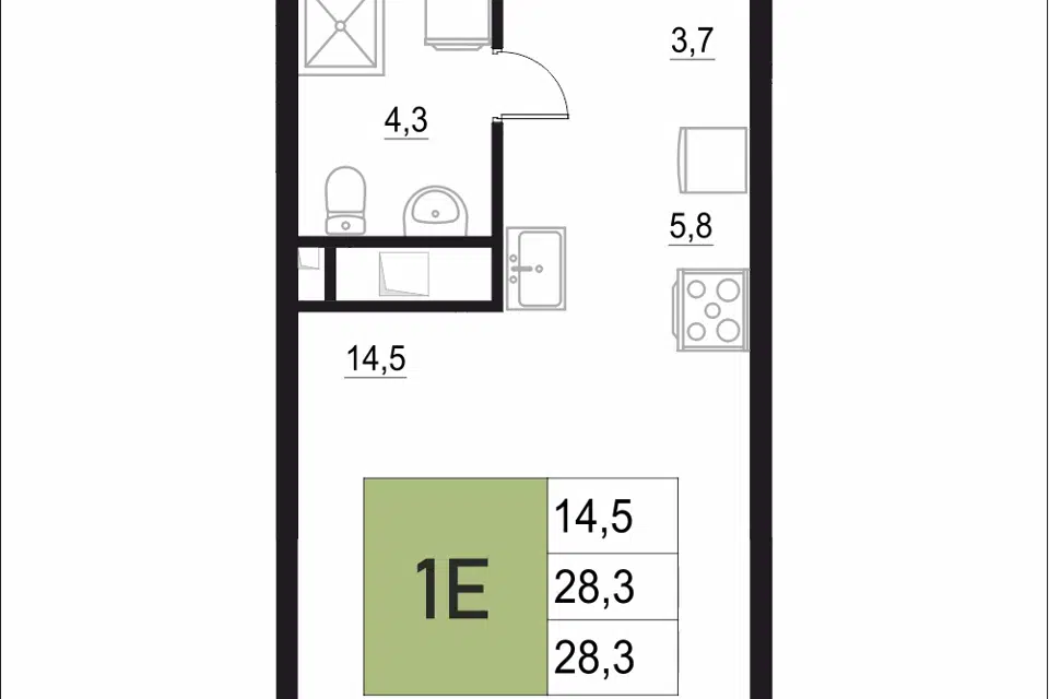 1-комн. кв., 28.3 м², 3/18 этаж