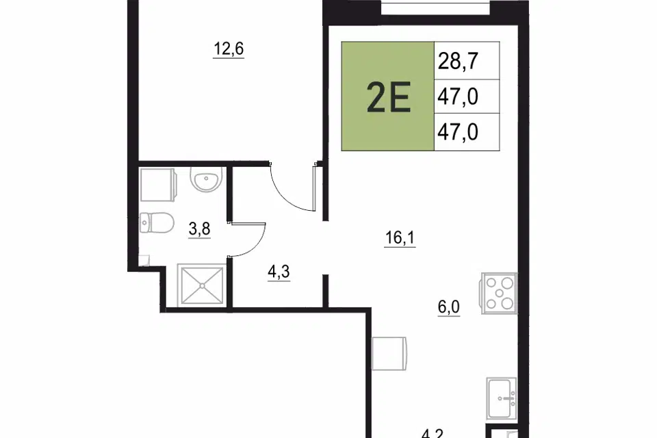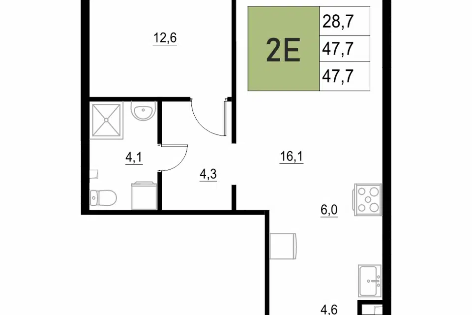 2-комн. кв., 47.7 м², 2/18 этаж