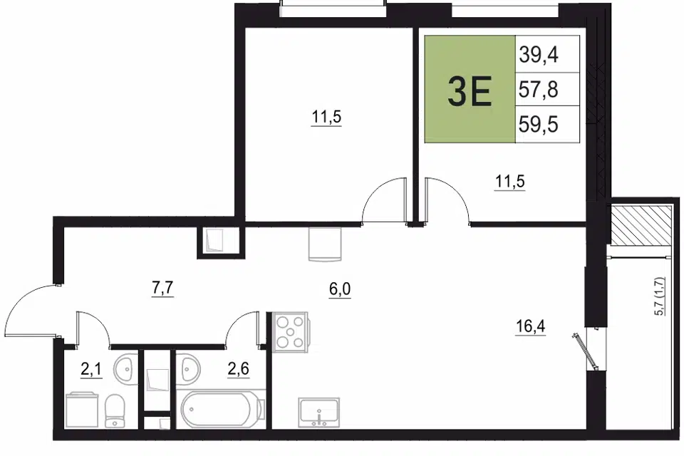 3-комн. кв., 59.5 м², 5/18 этаж