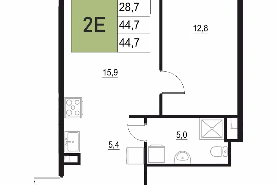 2-комн. кв., 44.7 м², 3/18 этаж