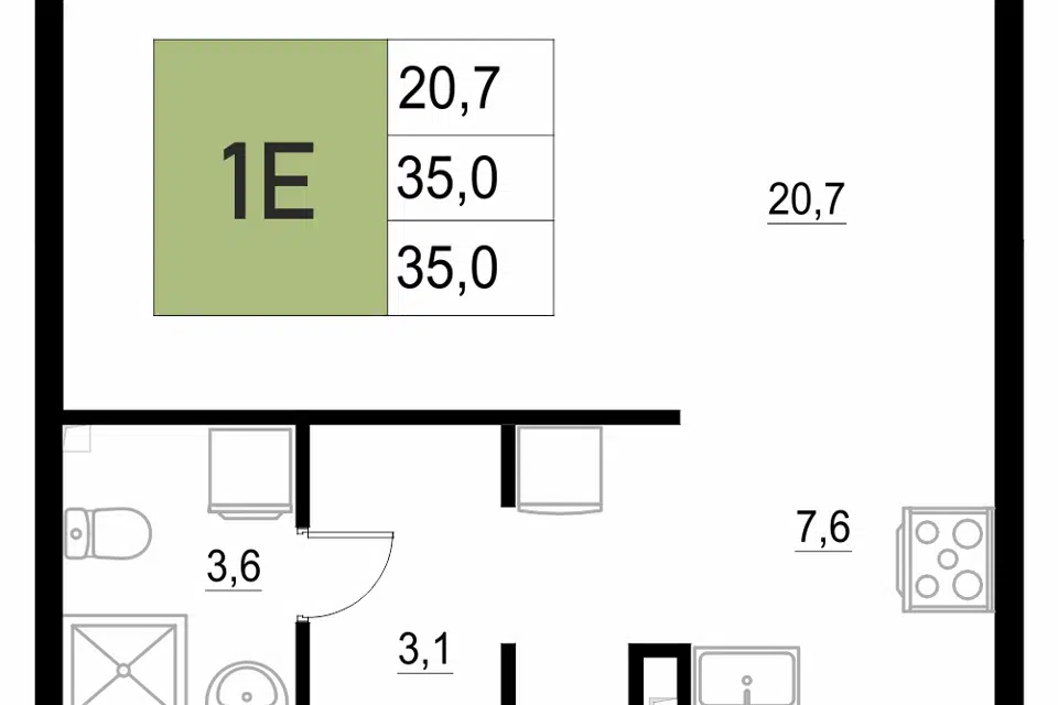 1-комн. кв., 34.5 м², 3/18 этаж