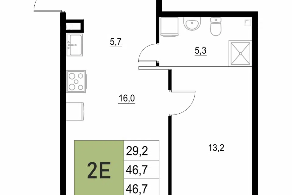 2-комн. кв., 46.7 м², 2/18 этаж