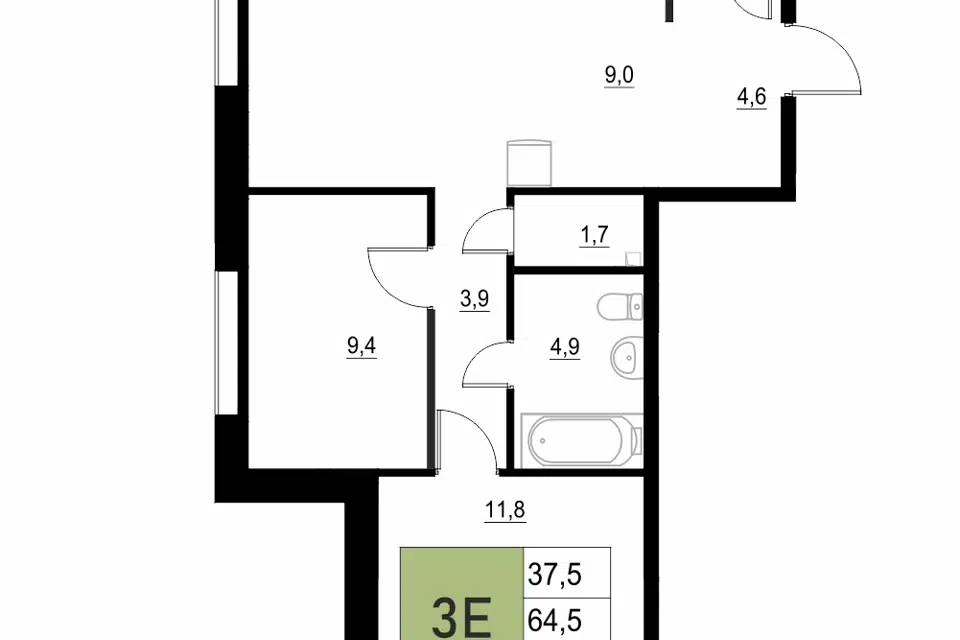 3-комн. кв., 64.5 м², 2/18 этаж