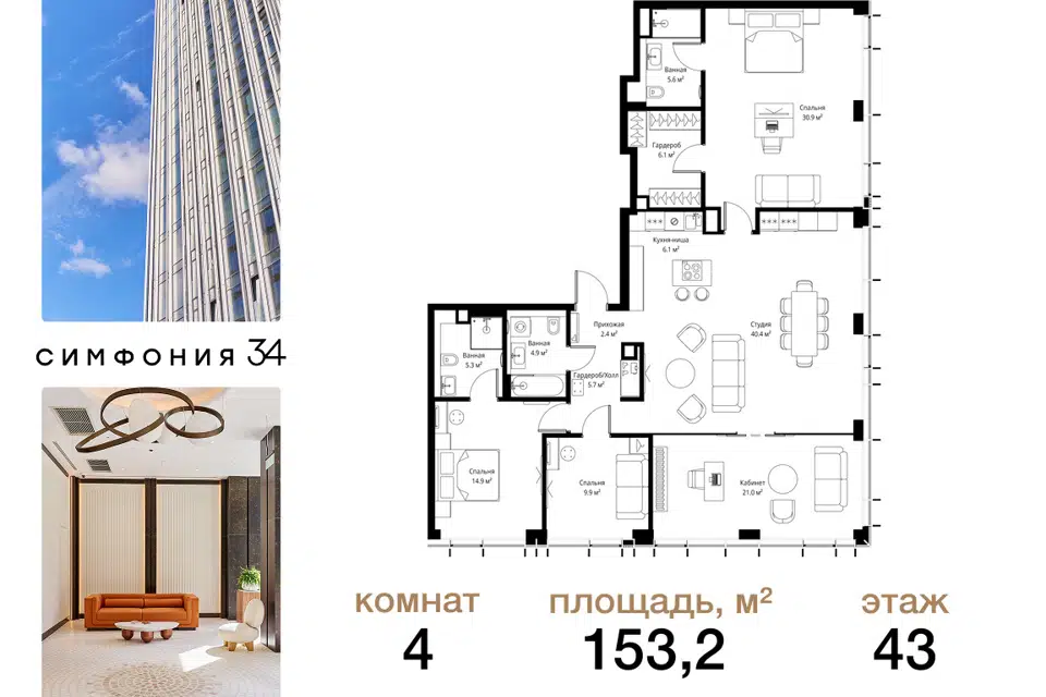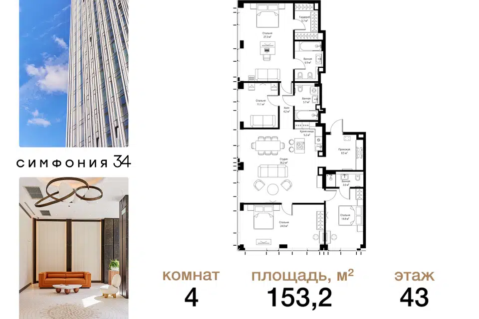4-комн. кв., 153.2 м², 43/43 этаж