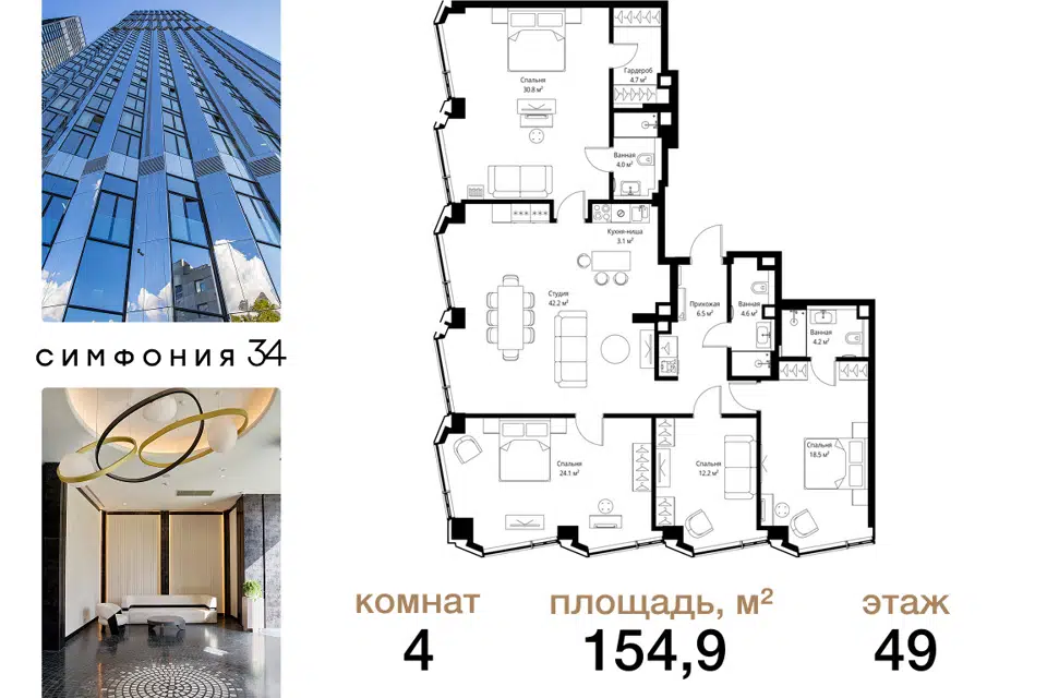4-комн. кв., 154.9 м², 49/49 этаж