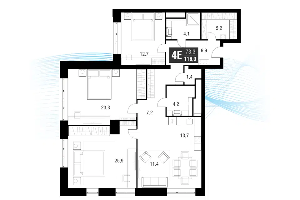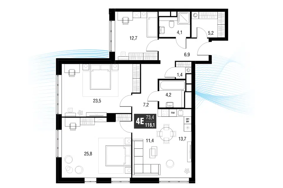 4-комн. кв., 115.7 м², 42/53 этаж