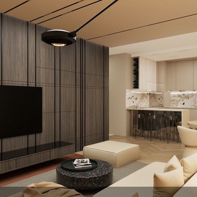 Квартира с двумя спальнями общей площадью 102 м² в комплексе клубных домов "Садовые кварталы" в Хамовниках. Квартира расположена на шестом этаже в корпусе 2.10, по карте Усачева д. 15А. Выполнена отделка по эксклюзивному проекту. Кухонный гарнитур и встроенные шкафы изготовлены по индивидуальному заказу из натурального дерева. Особое внимание уделено предметам декора, включая люстры, светильники, ковры и картины, которые способствуют созданию уютной и уникальной атмосферы.