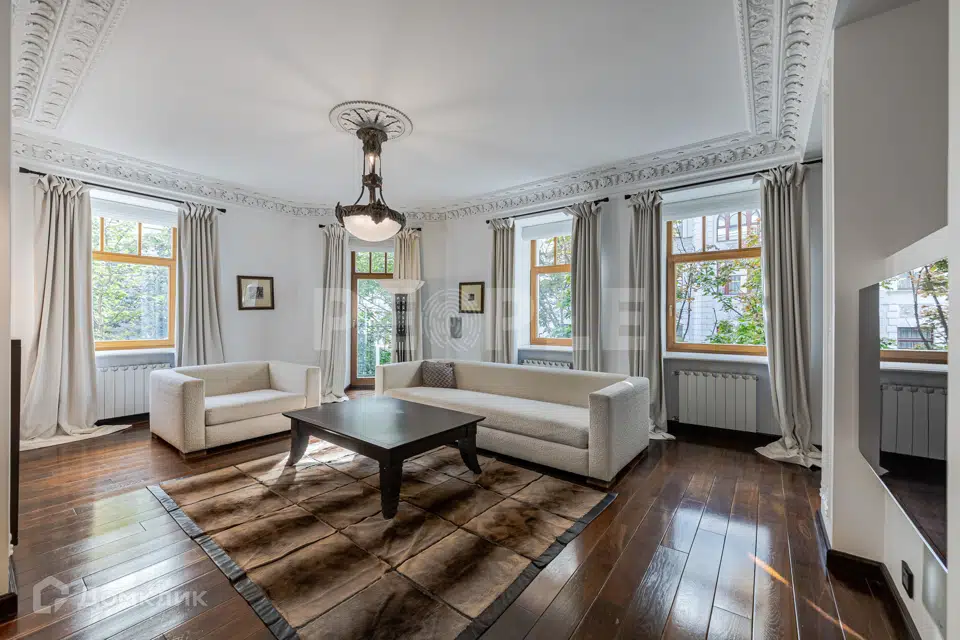 В историческом центре Москвы, в пешей доступности от Храма Христа Спасителя, шумного Нового Арбата, расположен малоквартирный дом 1913 г. В нем предлагается на продажу эксклюзивная 5-комнатная квартира, имеющая массу достоинств и преимуществ. К их числу можно отнести оригинальную мебель, уникальный дизайн интерьера и высокие потолки (4 м.). Отделка квартиры выполнена с использованием качественных дорогостоящих материалов.
