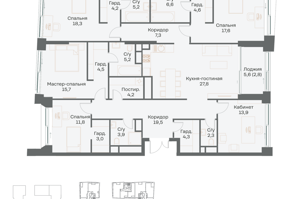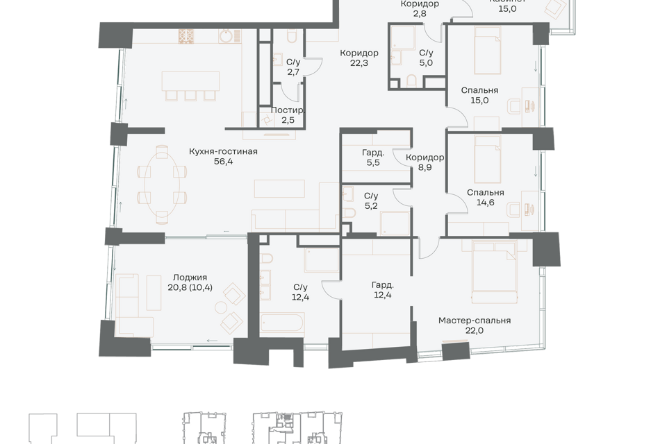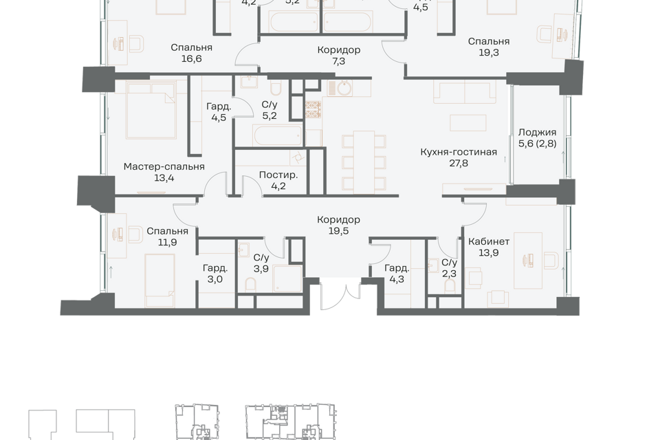 3-комн. кв., 160.6 м², 9/16 этаж