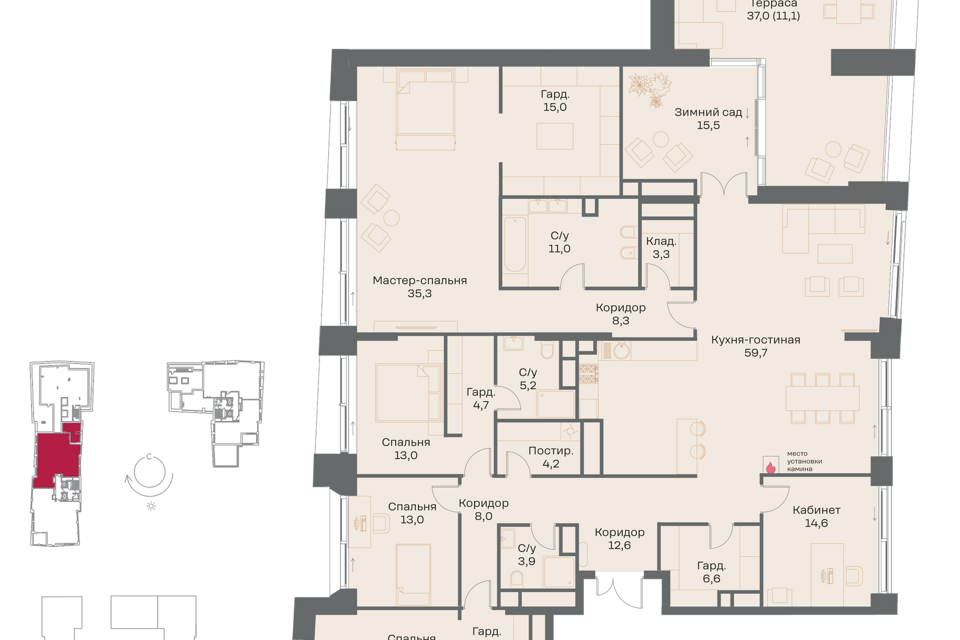 3-комн. кв., 275.6 м², 14/16 этаж