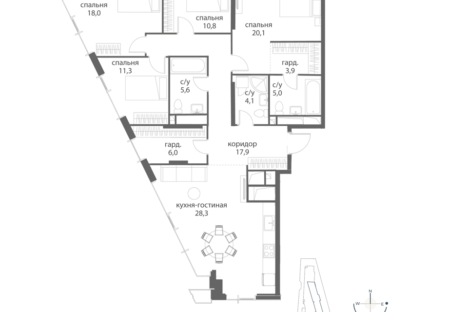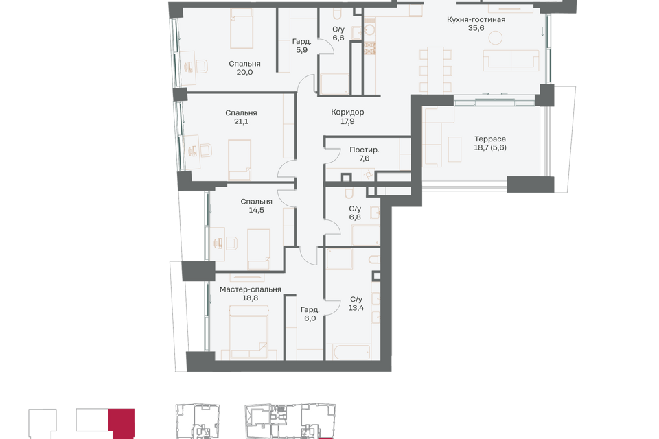 5-комн. кв., 180.1 м², 4/16 этаж