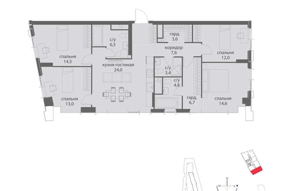 4-комн. кв., 147.3 м², 6/16 этаж