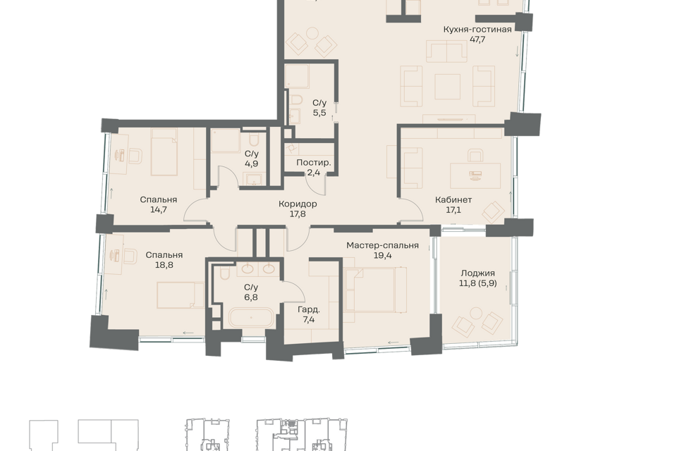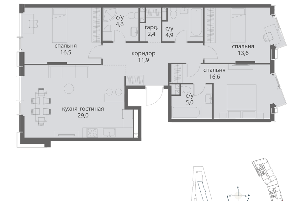 4-комн. кв., 143.4 м², 4/16 этаж