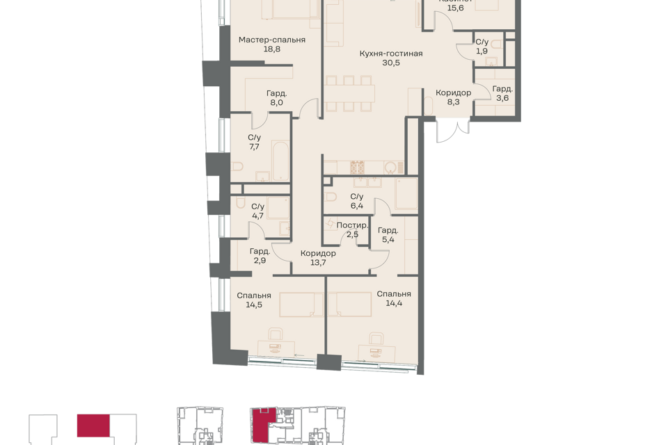 3-комн. кв., 183.4 м², 4/16 этаж