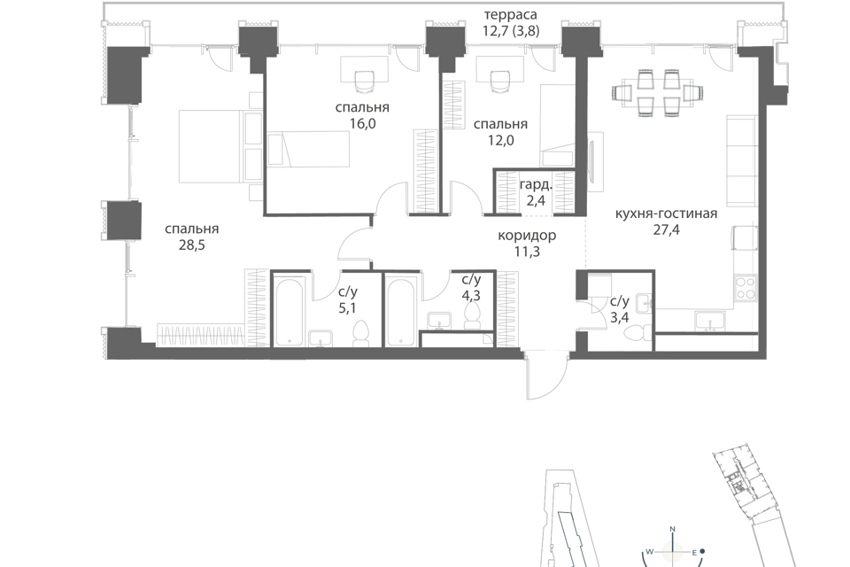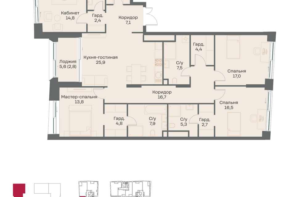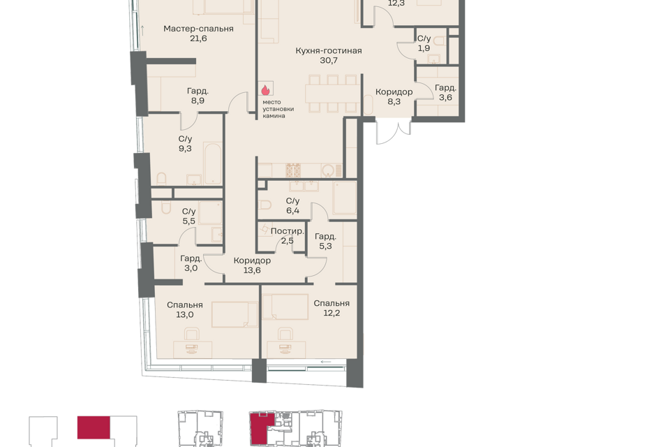 3-комн. кв., 155.1 м², 9/16 этаж