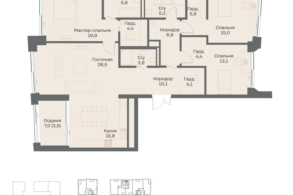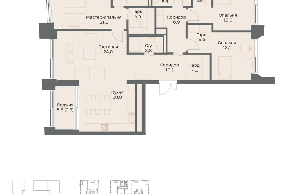 4-комн. кв., 131.1 м², 37/38 этаж
