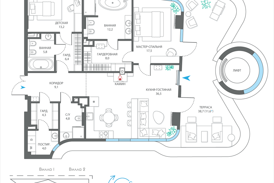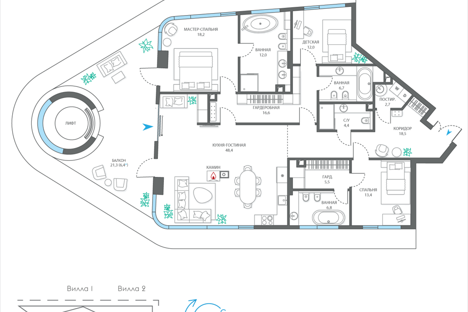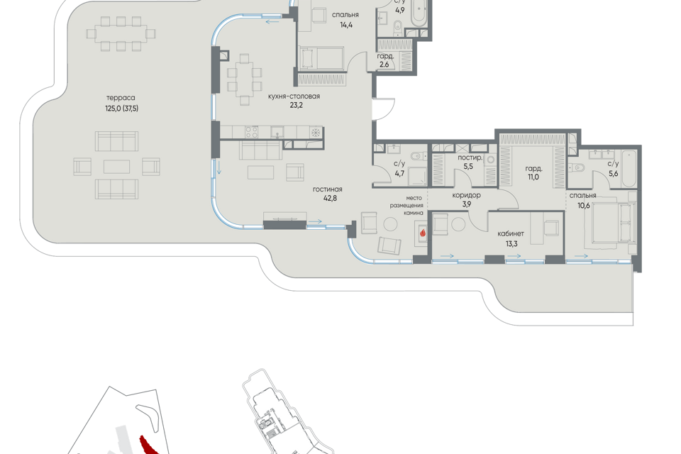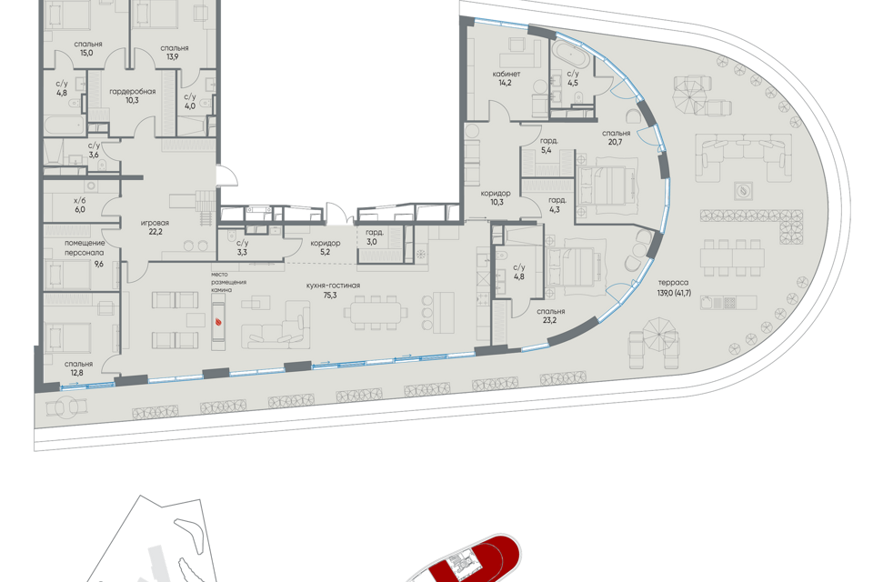 6-комн. кв., 318.1 м², 19/19 этаж