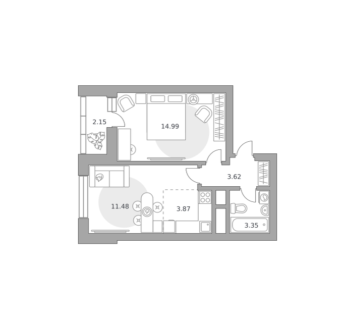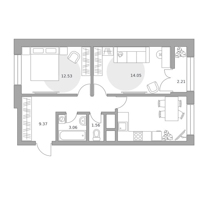 2-комн. кв., 34.26 м², 3/14 этаж