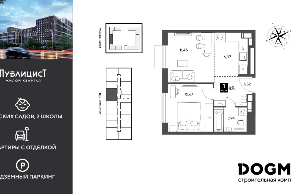 1-комн. кв., 37.4 м², 17/17 этаж