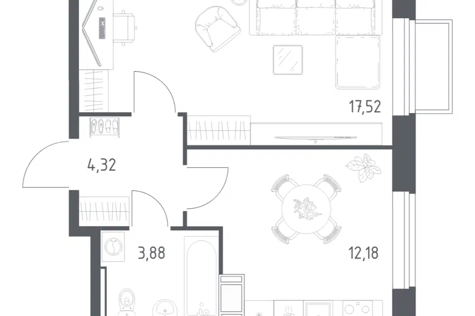 1-комн. кв., 41.2 м², 8/17 этаж