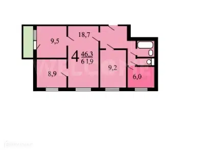 4-комн. кв., 61.9 м², 1/9 этаж