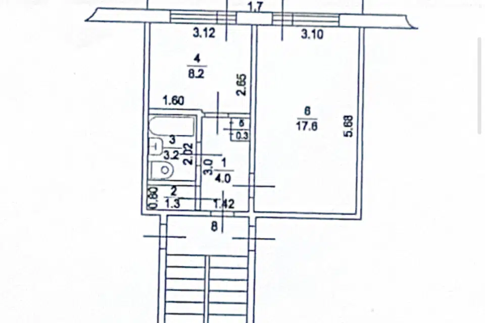 1-комн. кв., 30.2 м², 1/2 этаж