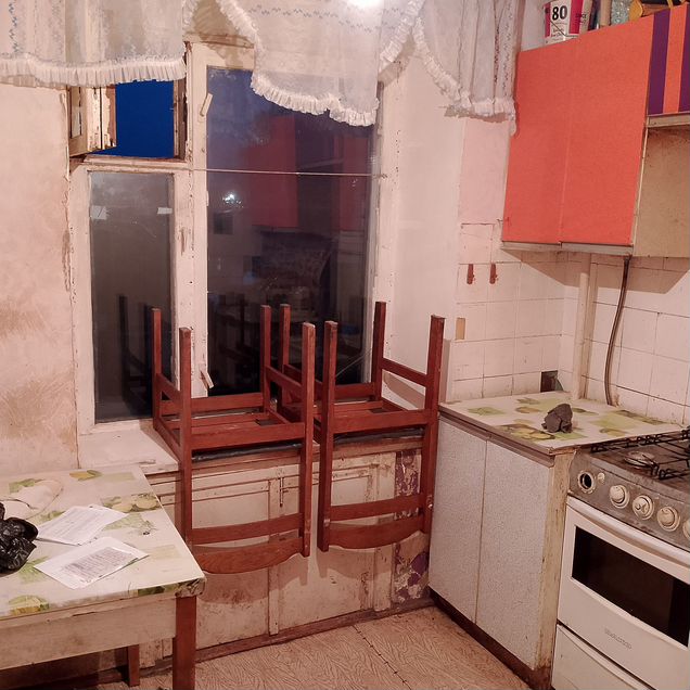 Есть вся мебель для проживания (диван, стол, шкаф, стиральная машина, кухонный гарнитур).