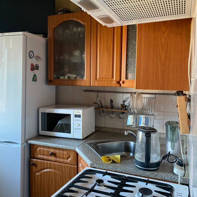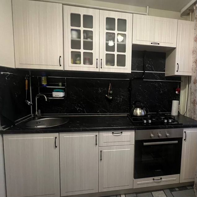 Кухня оборудована современным кухонным гарнитуром и газовой плитой, потолок натяжной белый матовый, так же установлен двухконтурный газовый котел, что особенно актуально в переходные осенне-весенние периоды, когда в квартирах с центральным отоплением мёрзнешь, можно отключать/включать полотенцесушитель по своему усмотрению. Так же есть возможность выставить ту температуру отопления и горячей воды, которая вам позволит чувствовать себя комфортней.