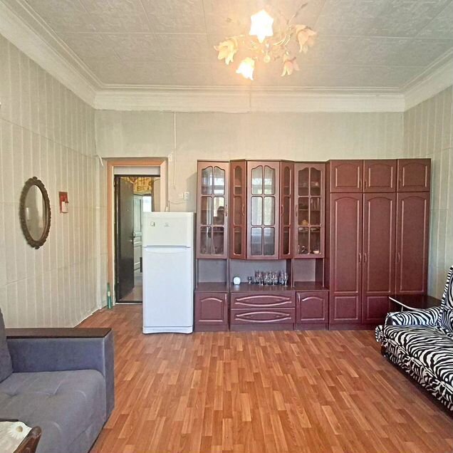 Квартира продается полностью с мебелью: кухонный гарнитур с бытовой техникой и холодильником, полностью укомплектованная ванная комната со стиральной машиной. В комнате: шкаф, диван и комод. В коридоре-все.
