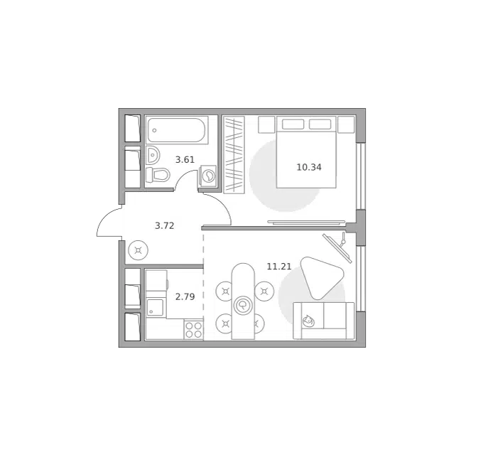 2-комн. кв., 34.26 м², 3/14 этаж