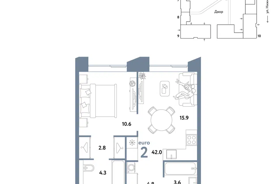 2-комн. кв., 42 м², 15/38 этаж