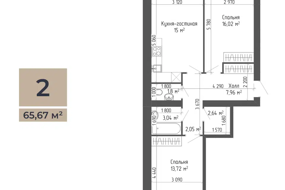 2-комн. кв., 63.95 м², 2/7 этаж