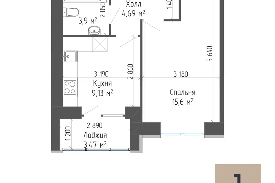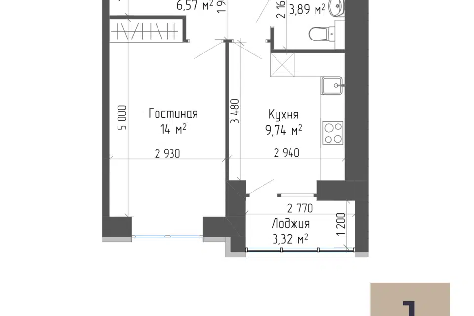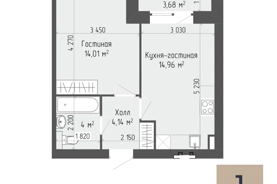 1-комн. кв., 38.67 м², 2/7 этаж