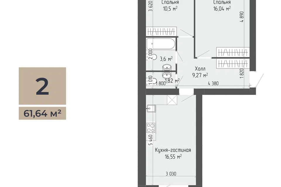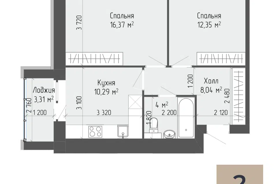 2-комн. кв., 59.71 м², 2/7 этаж
