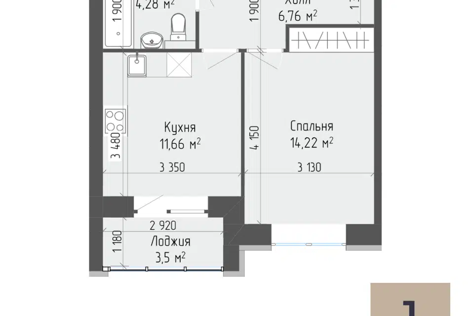 1-комн. кв., 38.95 м², 2/7 этаж