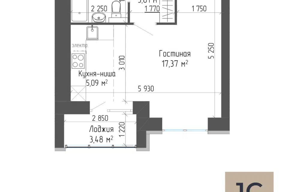 1-комн. кв., 31.26 м², 2/7 этаж