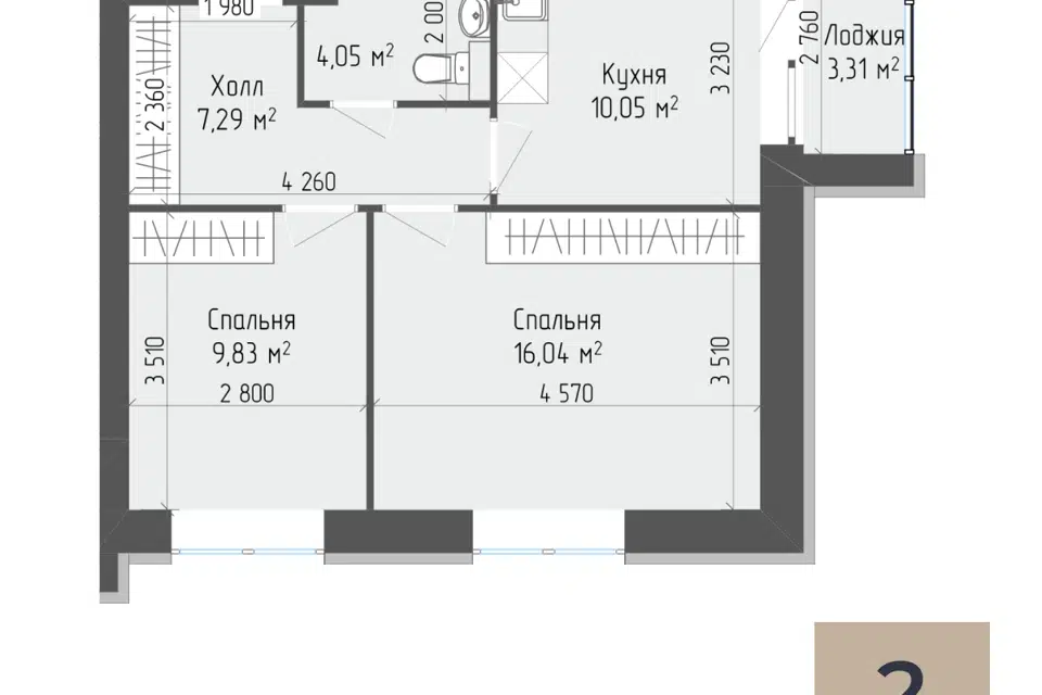 2-комн. кв., 42.8 м², 4/9 этаж