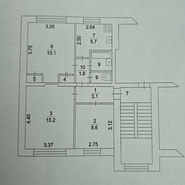 3-комн. кв., 42.7 м², 3/4 этаж