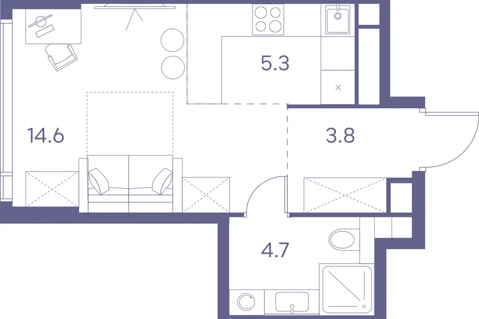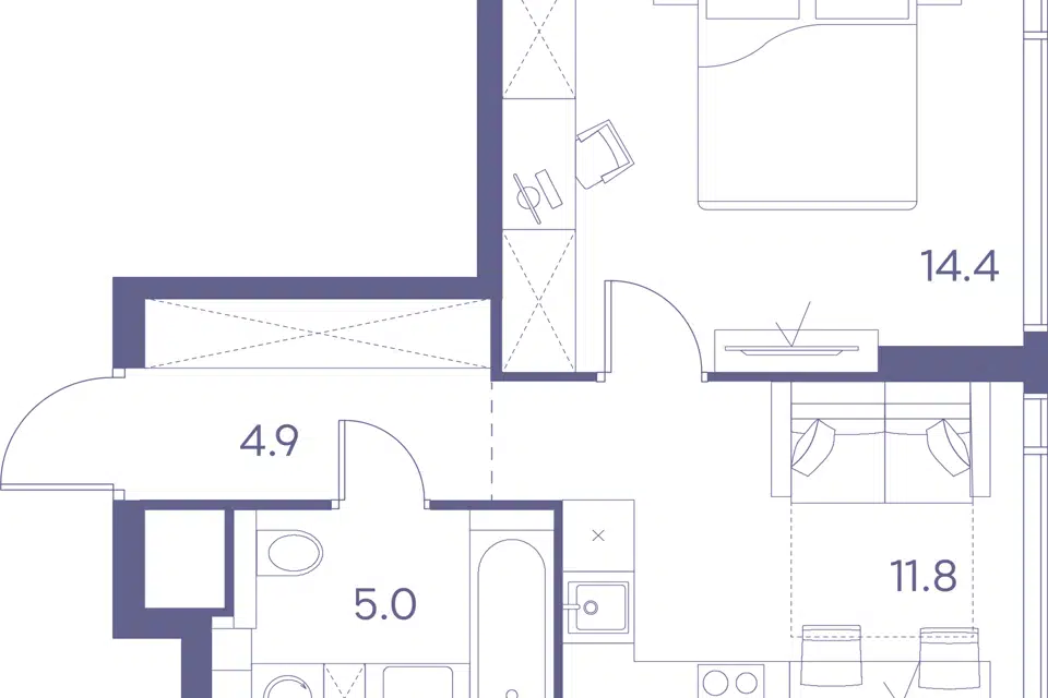 1-комн. кв., 39 м², 4/14 этаж