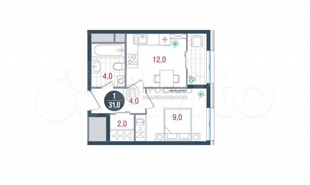 1-комн. кв., 31 м², 3/9 этаж