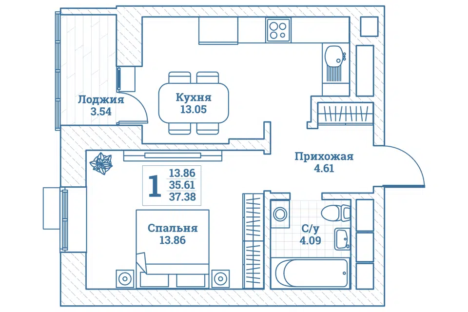 2-комн. кв., 38.6 м², 7/12 этаж