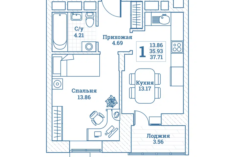 1-комн. кв., 37.71 м², 5/7 этаж