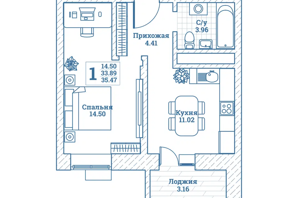 1-комн. кв., 34.5 м², 4/7 этаж