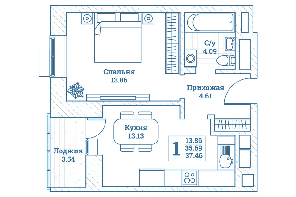1-комн. кв., 35.1 м², 1/9 этаж
