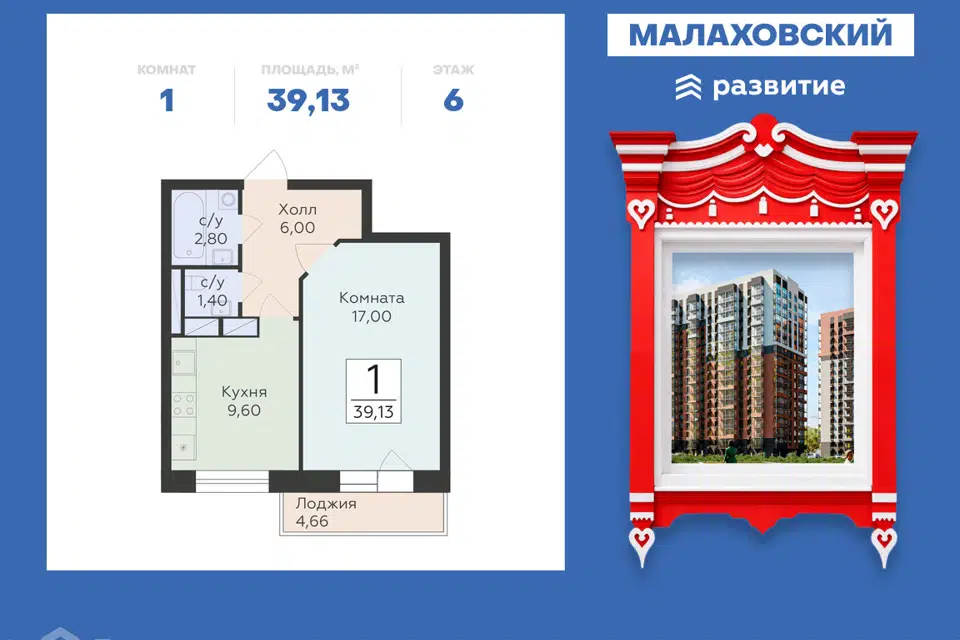1-комн. кв., 39.13 м², 6/17 этаж