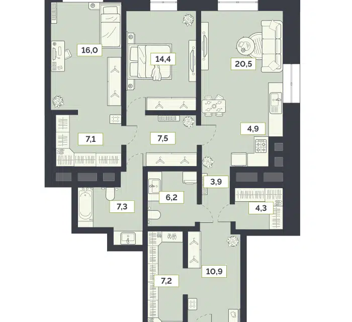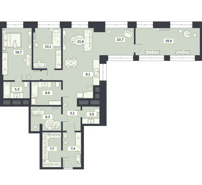 3-комн. кв., 109.6 м², 12/21 этаж