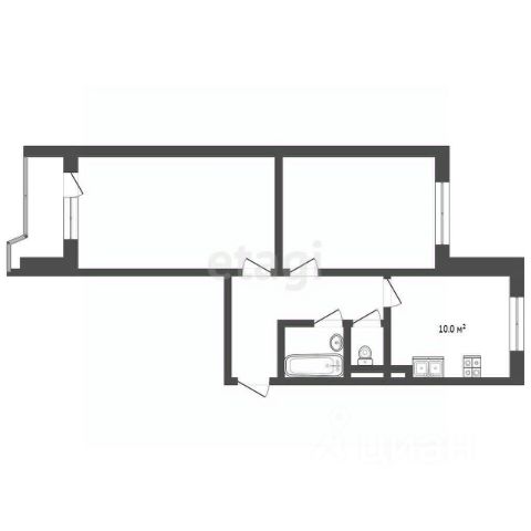 Две отдельные комнаты: гостинная 19,0 кв.м., спальня 14,9 кв.м; кухня 10,3 кв.м очень светлая и просторная; санузел раздельный.