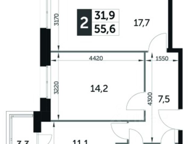 2-комн. кв., 55.6 м², 5/16 этаж
