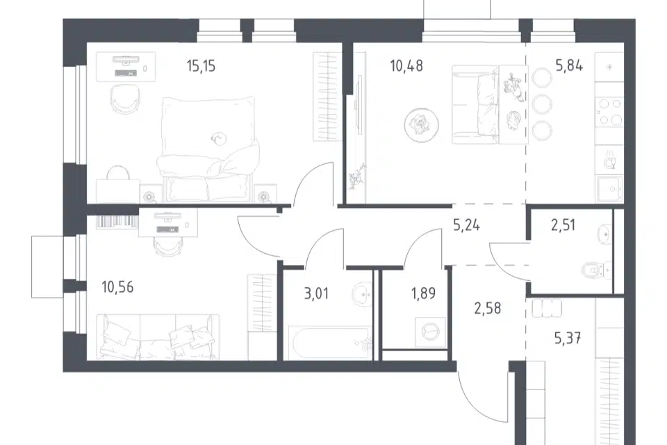 3-комн. кв., 56.5 м², 9/9 этаж