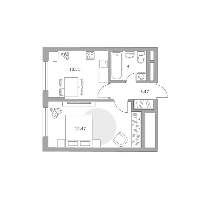 1-комн. кв., 51.4 м², 22/22 этаж